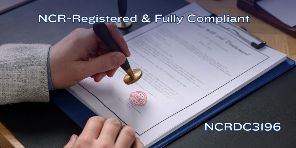 We are registered with the NCR (NCRDC3196) and a member of DCASA
